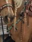 While we stock a limited supply of finished tack, the real fun comes in designing the perfect tack or accessory for each individual and horse. While we hope to guess correctly with our finished designs, frequently there are color or sizing preferences that are best met with a custom creation. Custom sizing is always available and for tack, can be best achieved by taking a few simple measurements of your horse or existing tack. Custom orders average 3-6 weeks depending on the time of year and number of orders being worked on.